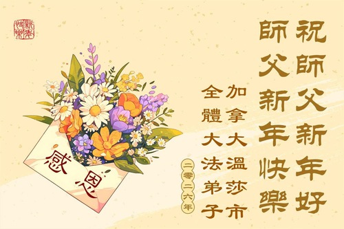 Practitioners in truth-clarification site in Toronto wish revered Master a happy New Year!