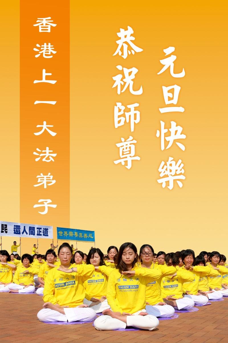 Practitioners from a Fa-study group and practice site in Hong Kong wish revered Master a happy New Year!