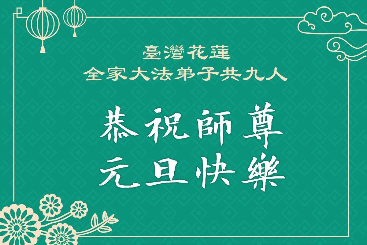 A practitioner’s family of nine people in Hualien, Taiwan wishes revered Master a happy New Year!