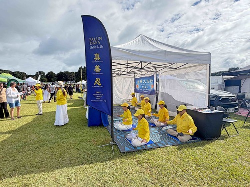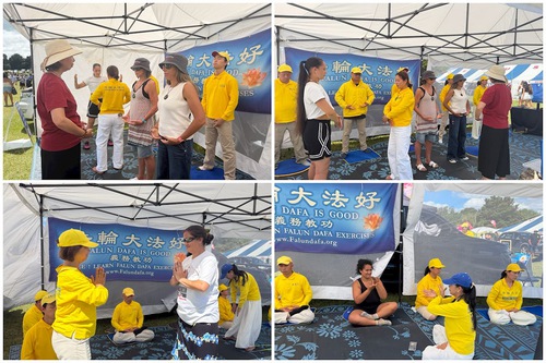 (Minghui.org) Practitioners participated in the annual Waitangi Day celebration in the Bay of Islands from February 5 to 6, 2026. They set up a booth, demonstrated the exercises, and introduced Falun Dafa to festival visitors.
