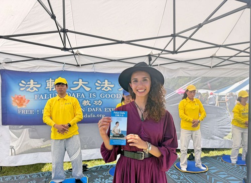 Maui Solomon, a lawyer from Chatham Island, stopped at the Falun Dafa booth. He said that he’s started looking into meditation and wanted to rediscover himself and establish a more harmonious relationship with the world through cultivation.