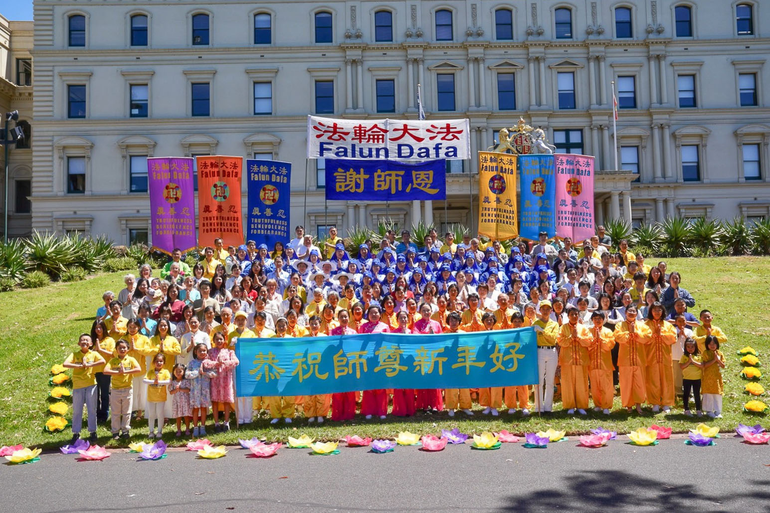 (Minghui.org) Practitioners held an event at the Treasury Gardens in Melbourne the first weekend in February to celebrate the upcoming Chinese New Year. They wished to thank the founder of Falun Dafa, Master Li, for the benefits they received from following the practice.