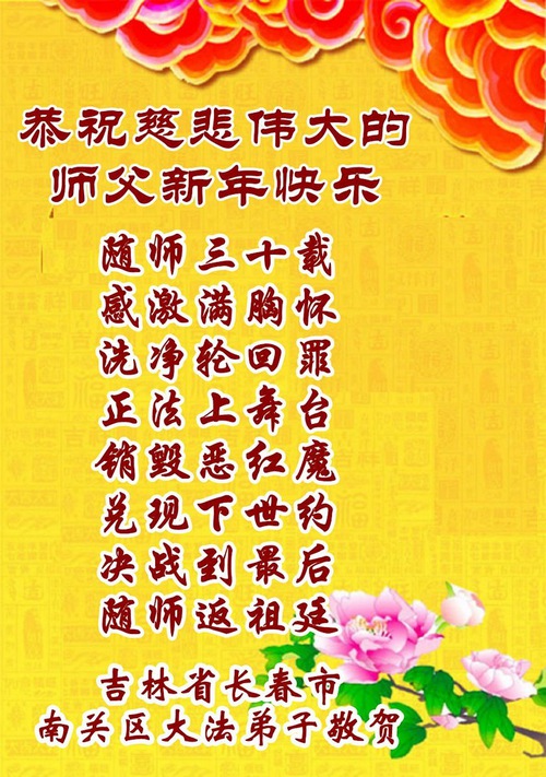 (Minghui.org) In this report, we present a selection of the 159 greetings sent from Falun Dafa practitioners in Changchun City, Jilin Province, China: