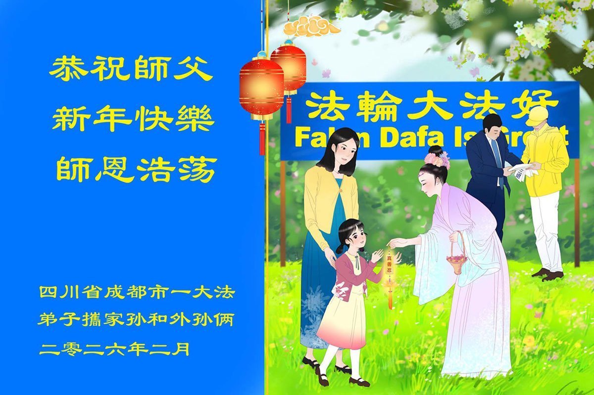 (Minghui.org) In this report, we present a selection of the 104 greetings sent from Falun Dafa practitioners in Chengdu City, Sichuan Province, China: