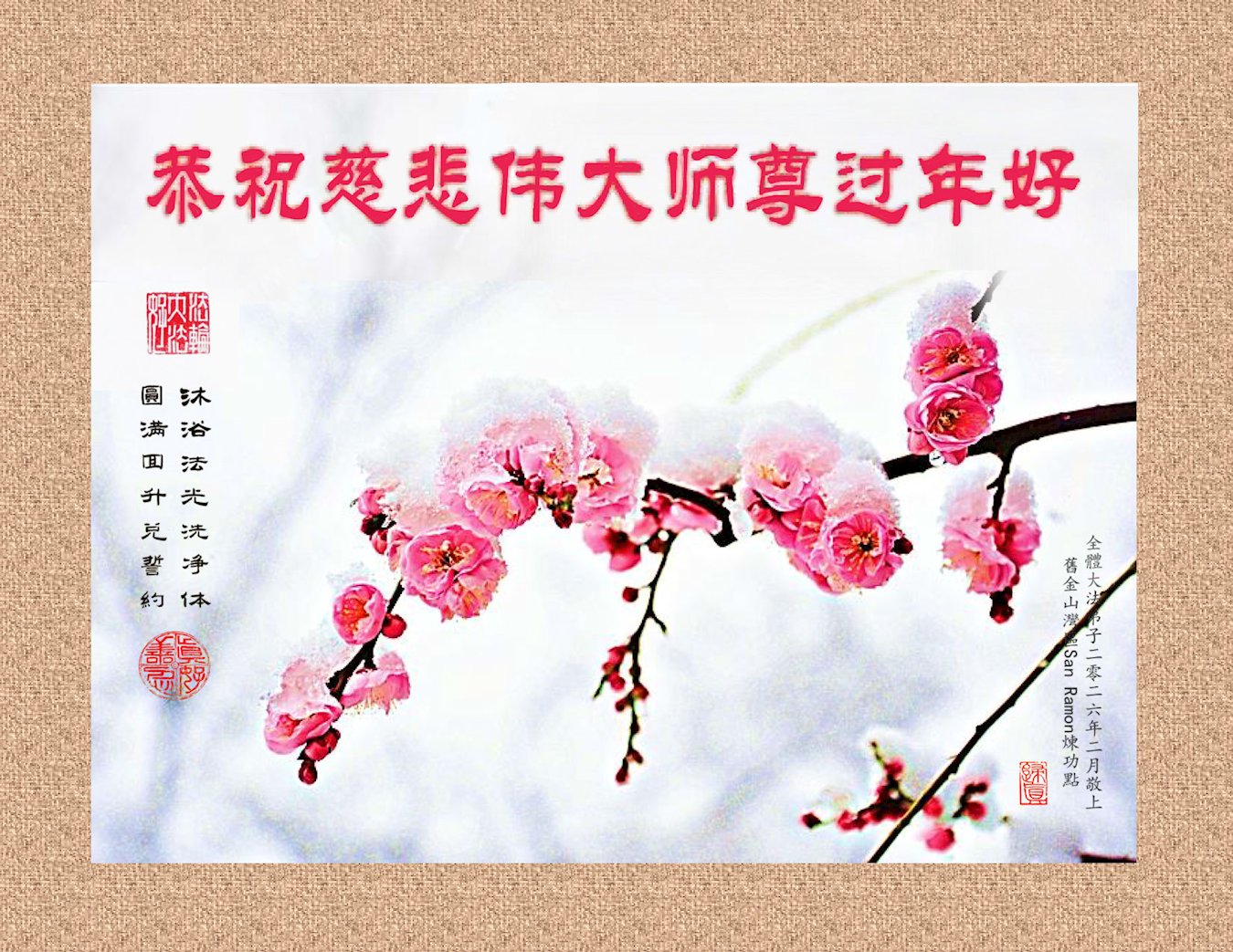 Practitioners who work in science and tech in the San Francisco Bay Area wish revered Master a happy Chinese New Year!