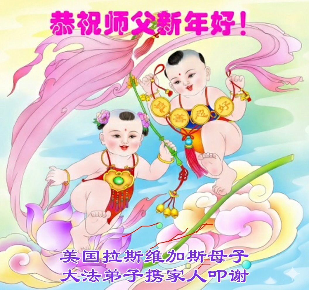 A mother, her son and their family in Las Vegas wish revered Master happy Chinese New Year!