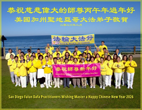 Practitioners in San Diego wish revered Master a happy Chinese New Year!