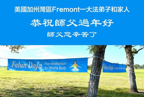 Practitioners at a group practice site in San Ramon, the San Francisco Bay Area, wish revered Master a happy Chinese New Year!