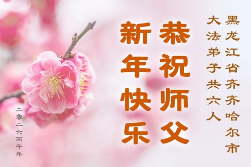 The greetings come from practitioners in these cities:Hegang, Suihua, Mudanjiang, Shuangyashan, Jixi, Daqing, Jiamusi, Qiqihar and other areas.