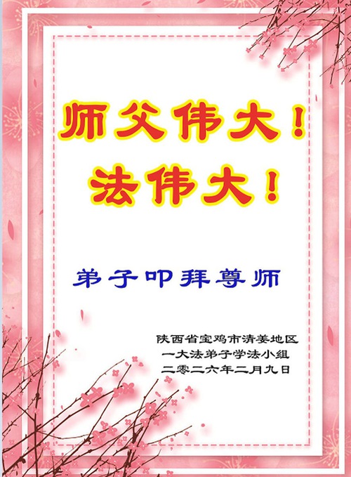 (Minghui.org) In this report, we present a selection of the 105 greetings sent from Falun Dafa practitioners in Shanxi, Shaanxi, and Gansu Provinces, China: