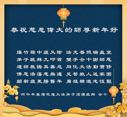 (Minghui.org) Falun Dafa practitioners in Taiwan, Hong Kong and Macau, wish Master Li a happy Chinese New Year: