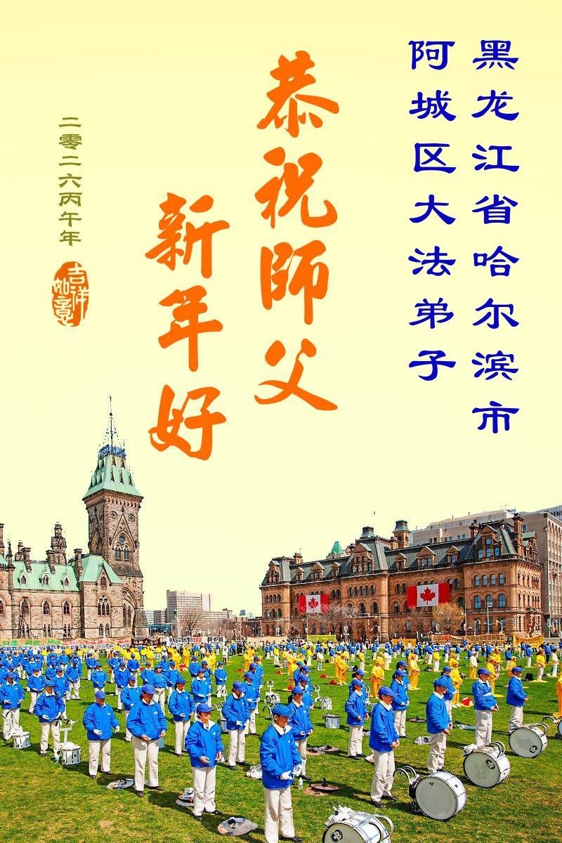 The greetings come from practitioners in these cities:Daqing, Qiqihar, Jiamusi, Hegang, Jixi, Heihe, Yichun, Shuangyashan, Mudanjiang, Harbin and other areas.
