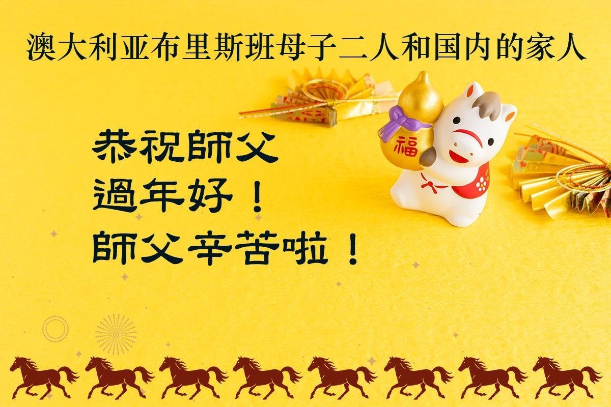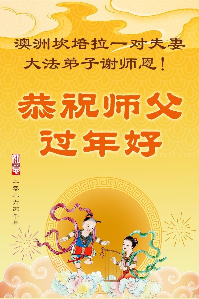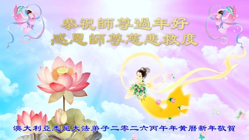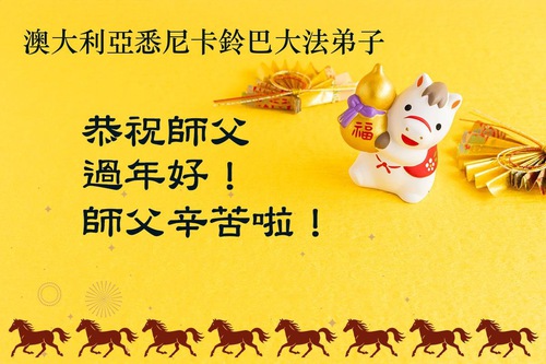 New Year greetings were also received from practitioners in Perth, a practitioner from Beijing who lives in Australia, practitioners at a practice site in Sydney, a practitioner in Melbourne, practitioners at a scenic truth clarification site in Sydney, and husband and wife in Queensland.