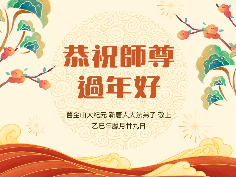Wishing Master a happy Chinese New Year! Thank you, Master, for your compassion! A new year brings new opportunities. As the new year approaches, I want to do my best to catch up with Master’s Fa-rectification progress, study the teachings more, try my best to get rid of my attachments, cultivate diligently, and do the three things well and live up to Master’s saving grace, and my mission.