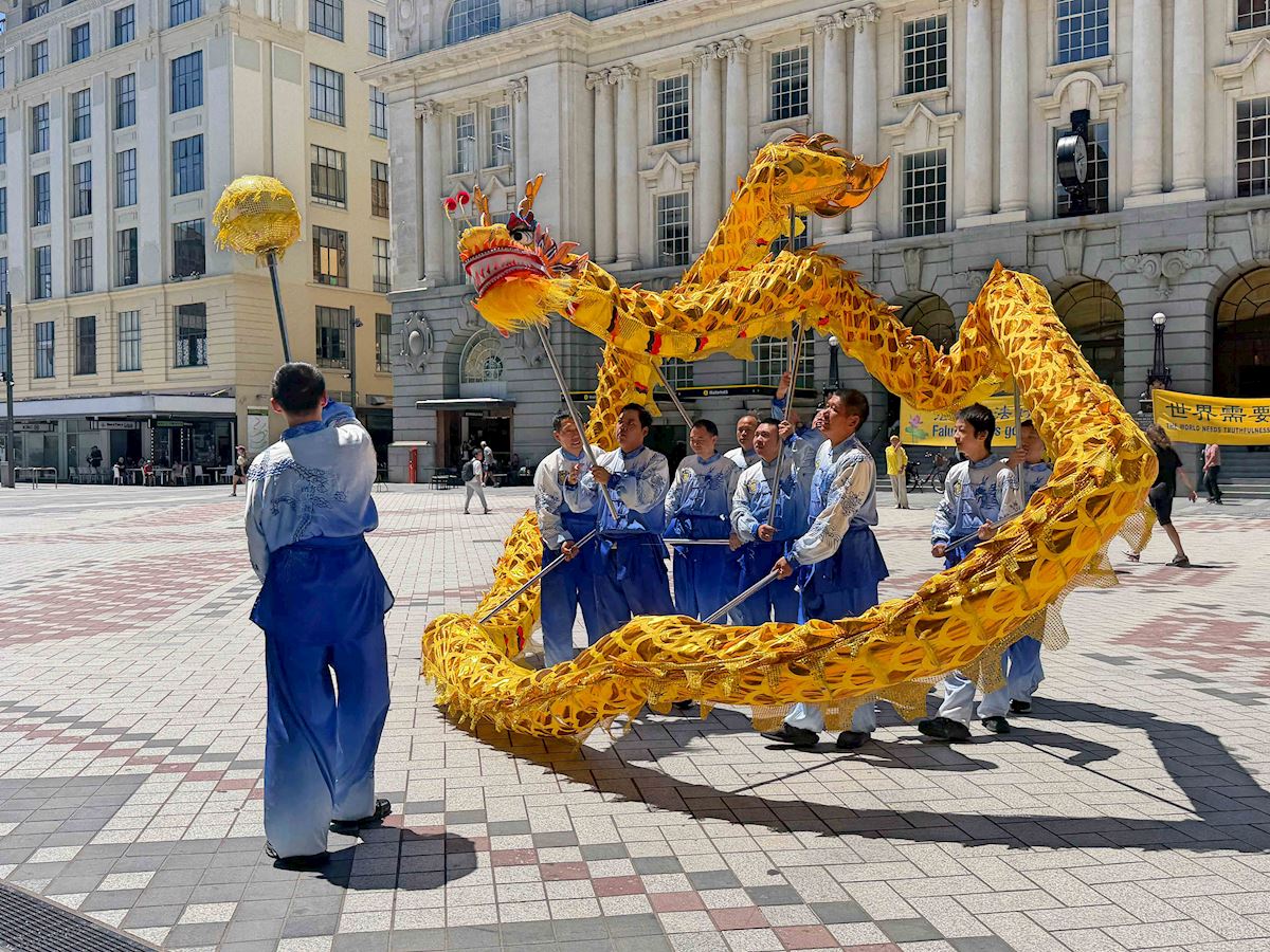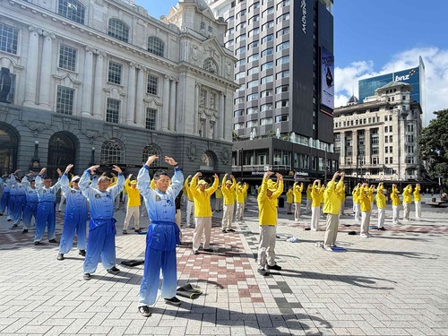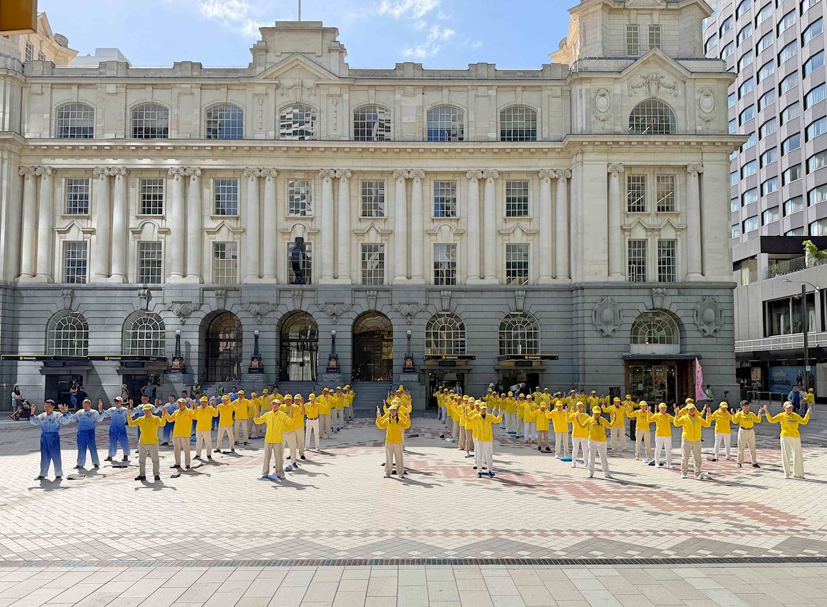 (Minghui.org) Practitioners held an event at Commercial Bay Plaza in Auckland on January 31, 2026, to introduce Falun Dafa to the public. They demonstrated the exercises and taught them for free. They also told people about the Falun Dafa practice and performed a dragon dance.