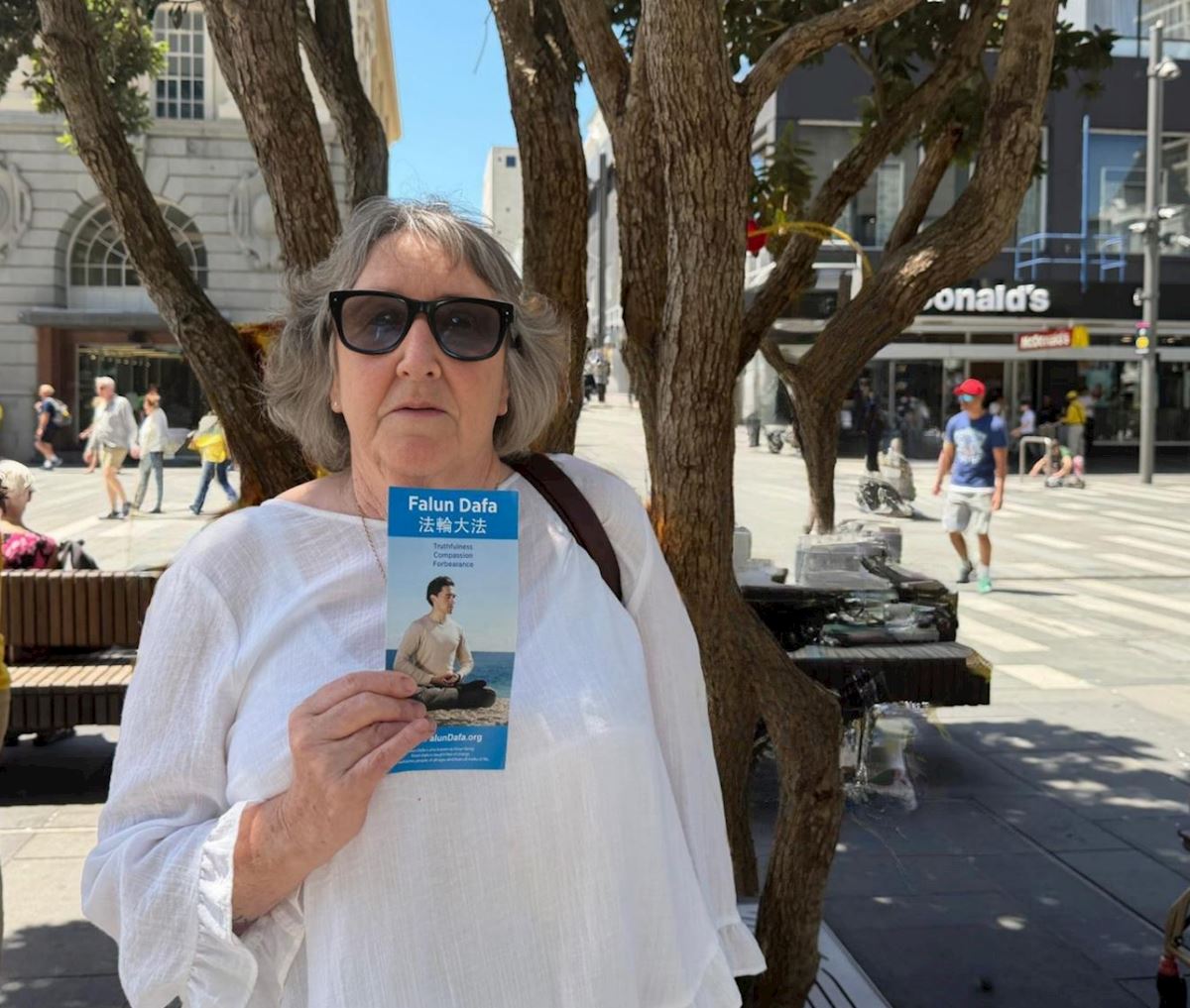 Staines thanked the practitioners for introducing Falun Dafa to the public, and said that practicing could not only improve peoples’ minds and bodies, but following the guiding principles could help build a better community. She said she hopes to learn more about Falun Dafa.