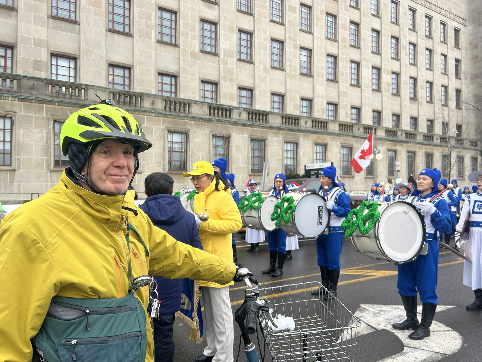 Paul O’Lachtnain from Ireland moved to Ottawa in 2017 and said he was glad to see the parade return. As an Irishman who loves peace and happiness, he was delighted to see the Tian Guo Marching Band, and he praised the color and their music.