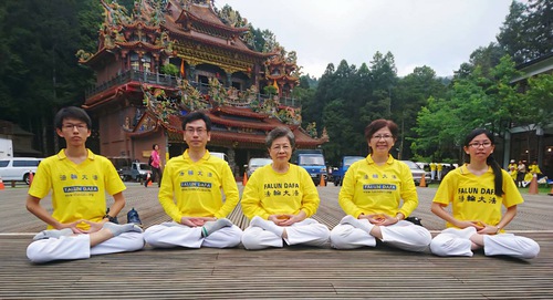 Photo: Mrs Yan (second from right) practicing Falun Gong with her family.