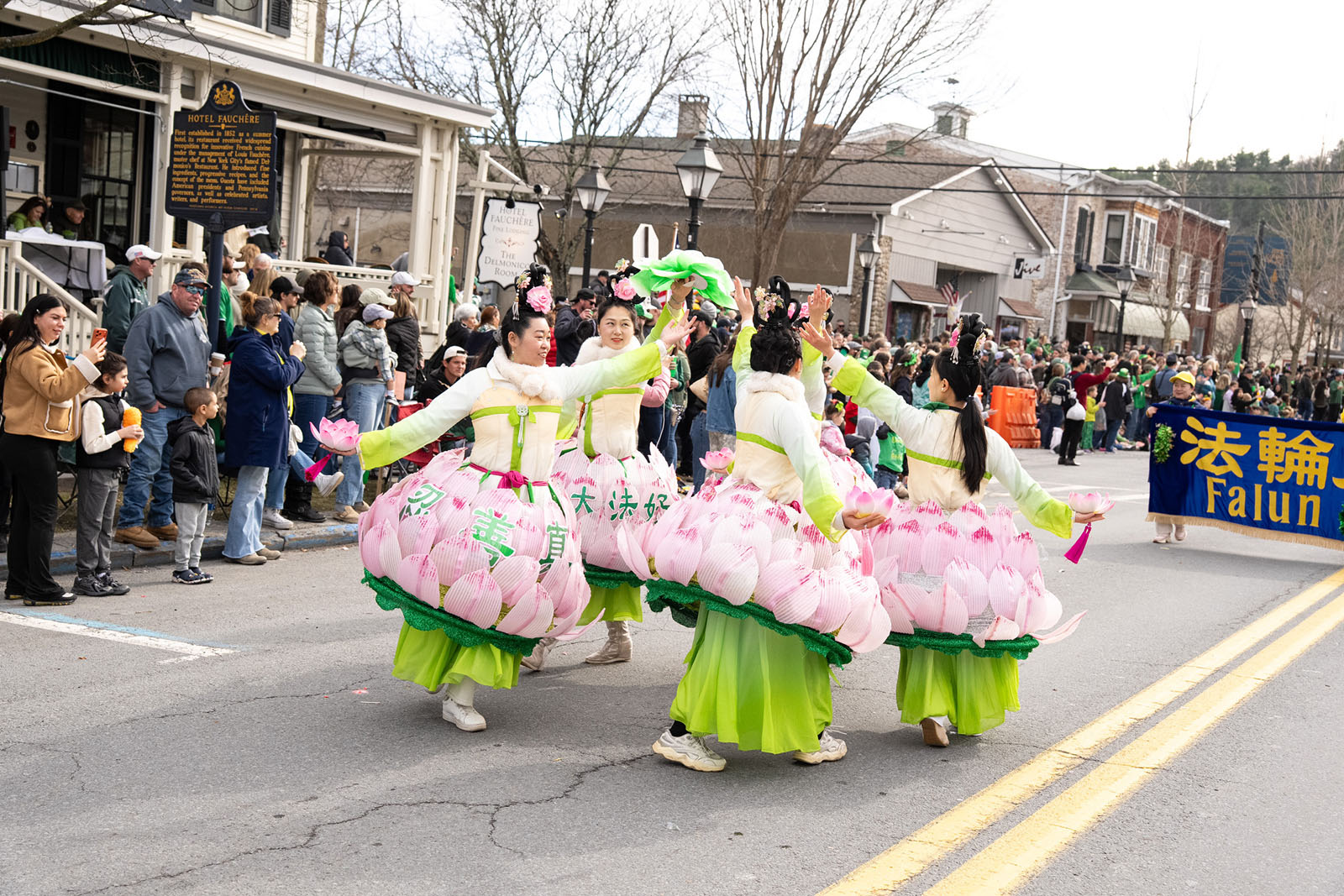 (Minghui.org) Falun Dafa practitioners participated in the St. Patrick’s Day parade in Milford, Pennsylvania on March 21, 2026. Their dragon dance and fairy dance contributed to the festivities and the parade’s diversity.