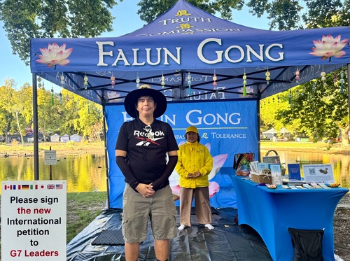 Many people visited the Falun Dafa booth, listened to practitioners’ introduction of the practice and how the CCP persecutes it. They signed the petition calling for an end to the human rights abuses.