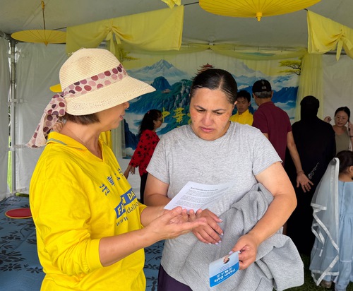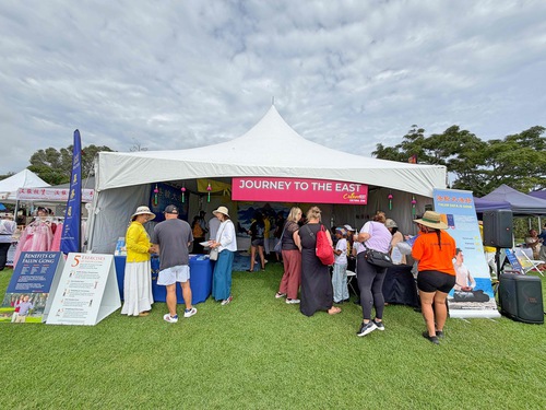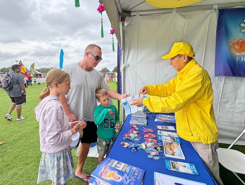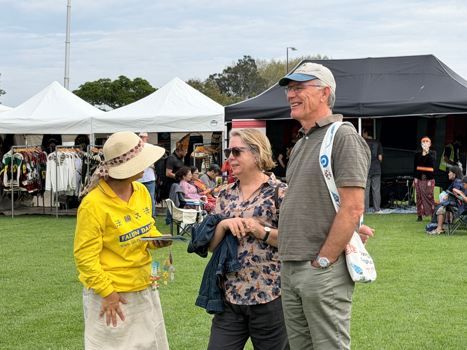 People learn about Falun Dafa during Culture Fest 2026 in Auckland on March 29, 2026.