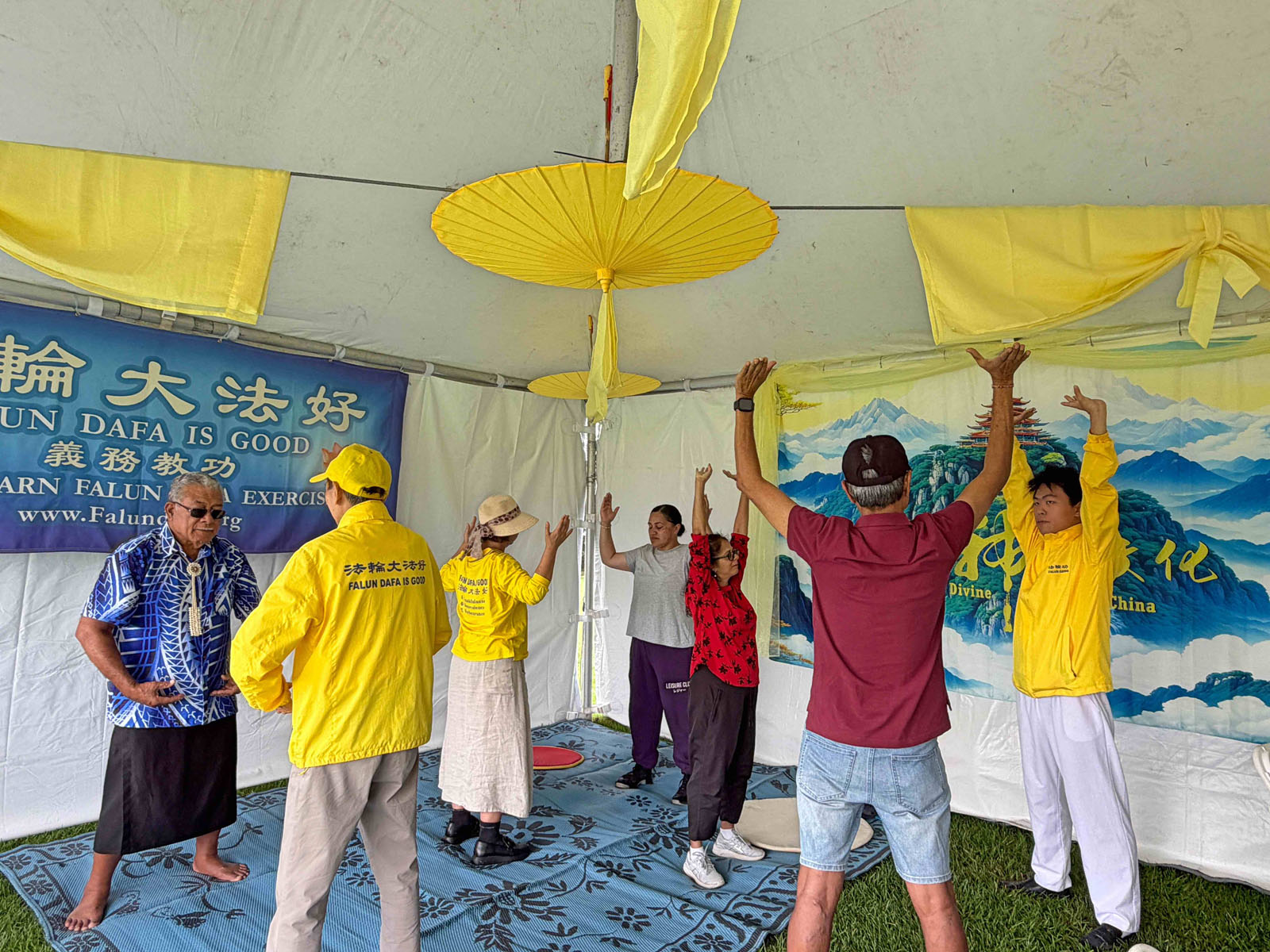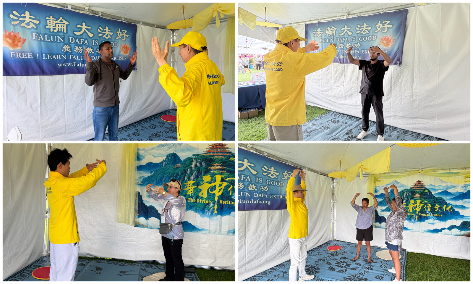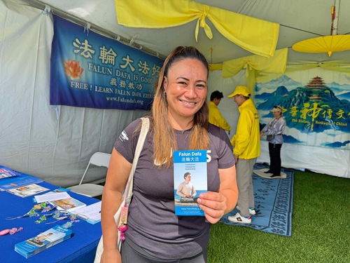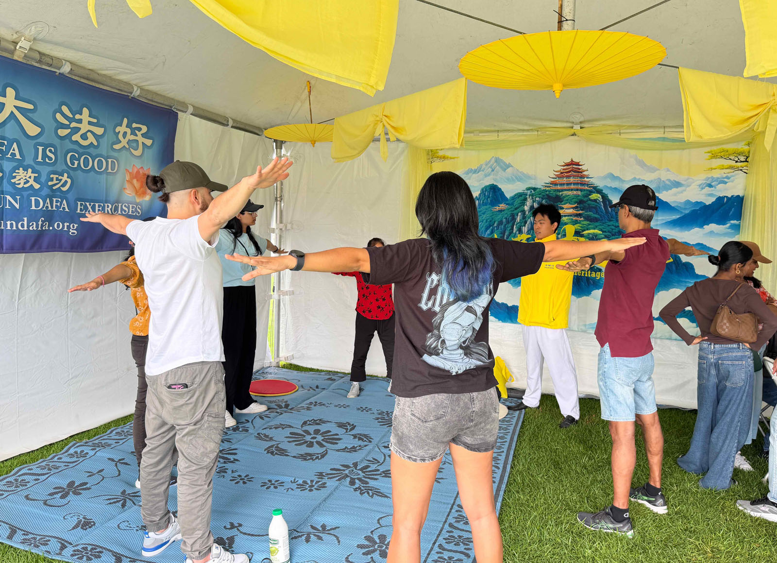 Rebecca was among the many people who tried the exercises. “This is the first time I’ve done the [Falun Gong] exercises. I never tried it before, although I’ve seen people practicing the exercises outdoors.