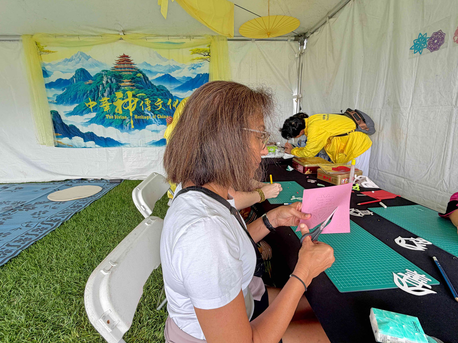 Dafa practitioners introduced different aspects of traditional Chinese culture, including paper cutting, calligraphy, and tea tasting. Many festival visitors stopped at their booth, and a number of people said they admired practitioners for their peace, patience, and kindness.