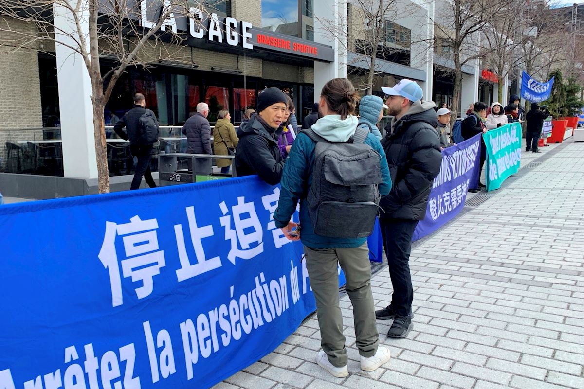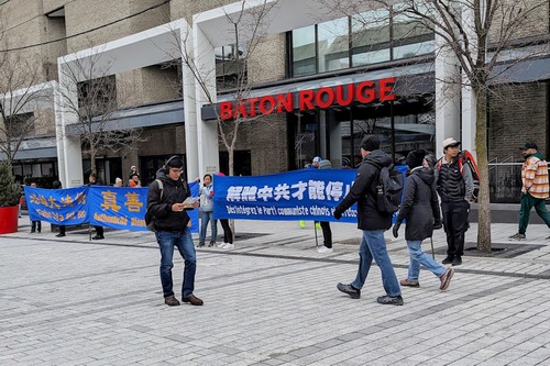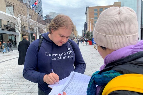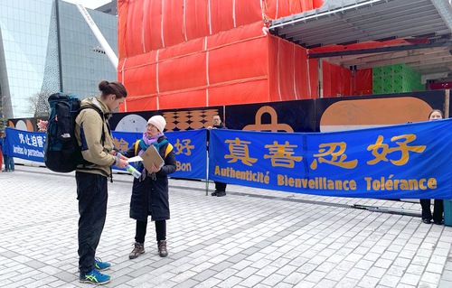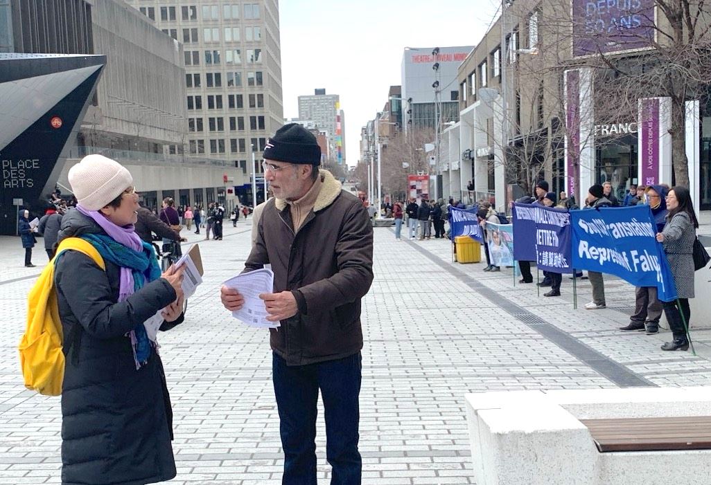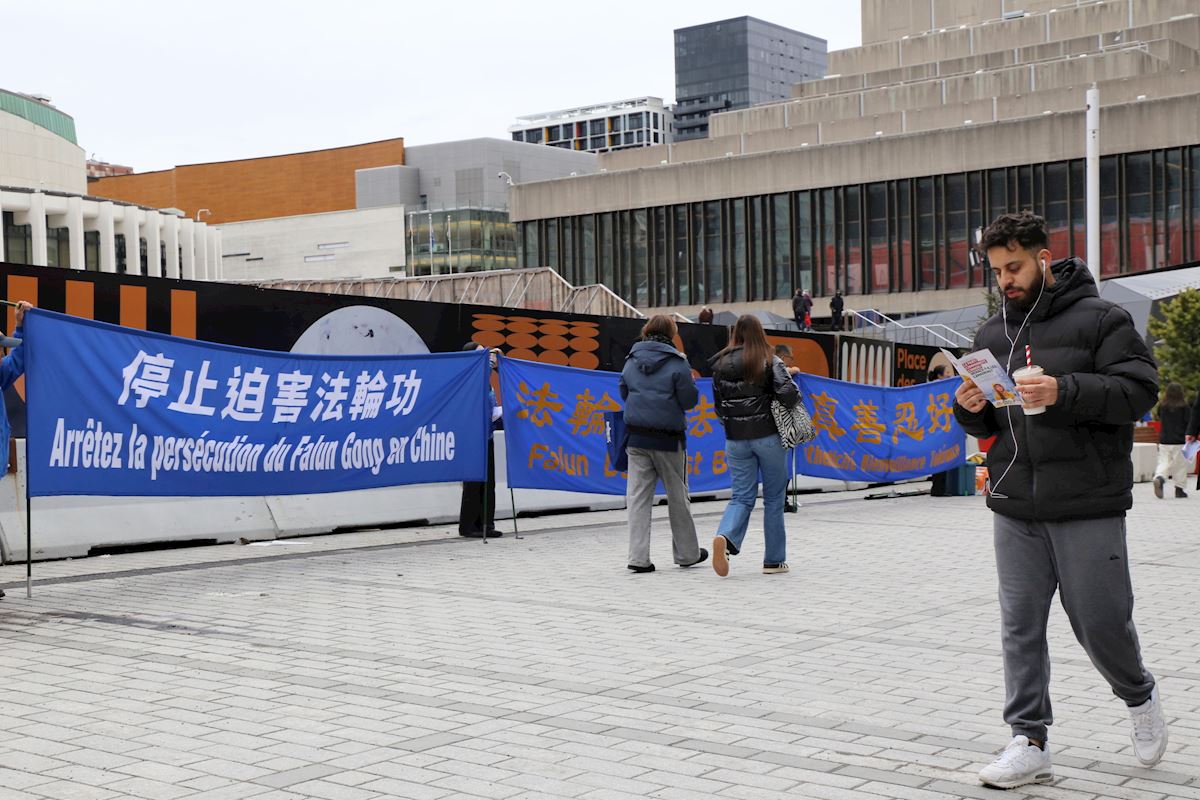 (Minghui.org) Falun Dafa practitioners held activities in downtown Montreal, Canada on the weekends of April 4 and April 11, 2026, during which they told people how the Chinese Communist Party (CCP) brutally persecutes practitioners in China, and has extended this suppression overseas. Many people expressed their support for the events.