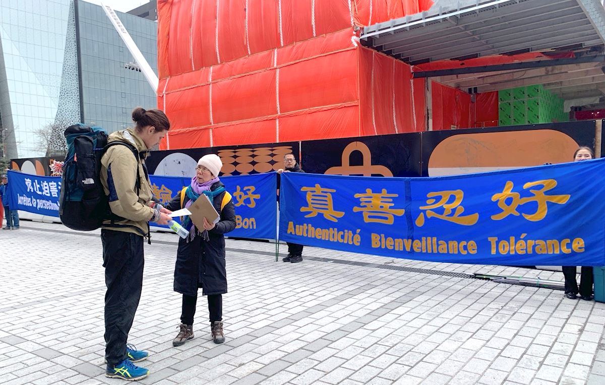 Preeti, who came to Montreal for the Liberal Party National convention, said she was moved by the event. “This group includes people of all ages and from different ethnic backgrounds. Holding banners in this cold weather, their unity and resilience touched me deeply.” She said she learned about Falun Dafa from her friend, and she agreed with it’s principles of Truthfulness-Compassion-Forbearance. “I hope more people in this world practice Falun Dafa. These principles are lacking in the world today.”