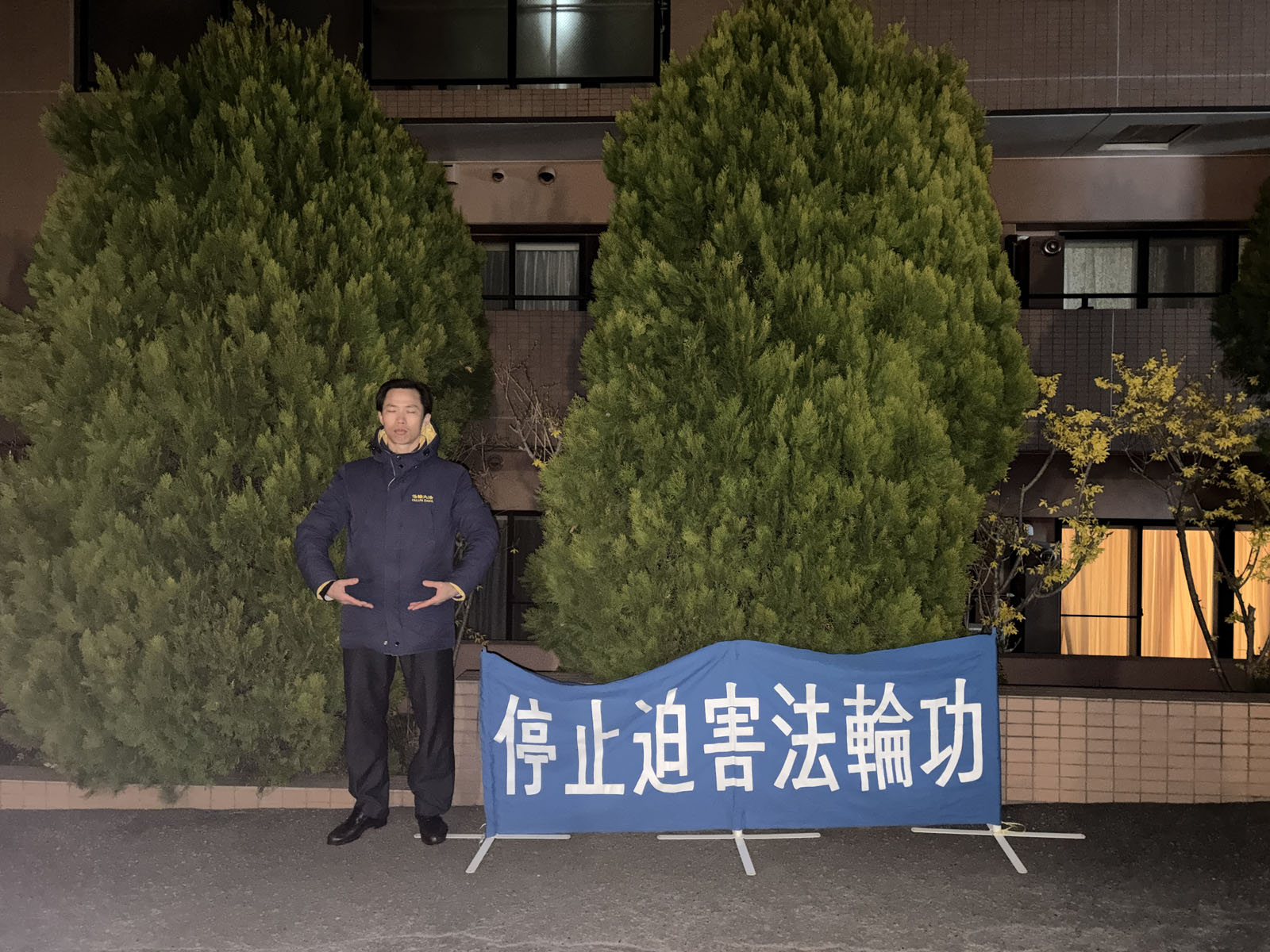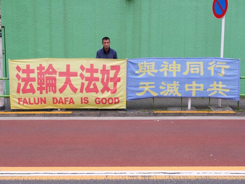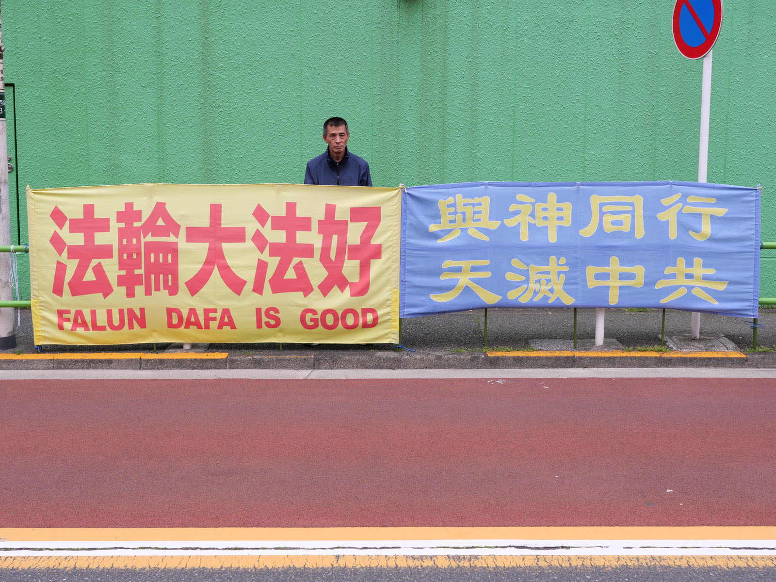 Mr. Sun participated in the protest in front of the Chinese Embassy in Tokyo on April 25th, and held up a banner to call on the CCP to end the persecution.