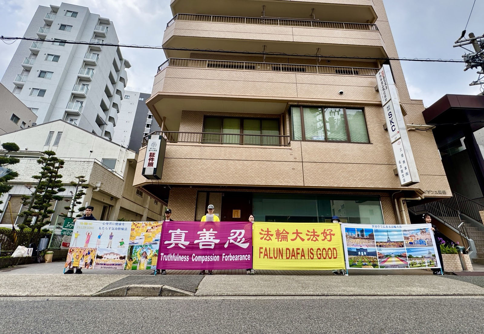 (Minghui.org) To mark the 27th anniversary of the April 25 appeal in Beijing, Falun Dafa practitioners held a series of peaceful protests in front of the Chinese Embassy and Consulates in Tokyo, Osaka, Fukuoka, Nagoya, and Sapporo from April 21 to 25, 2026. They protested the Chinese Communist Party’s (CCP) persecution and urged people to help end the persecution.