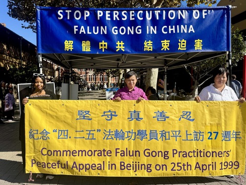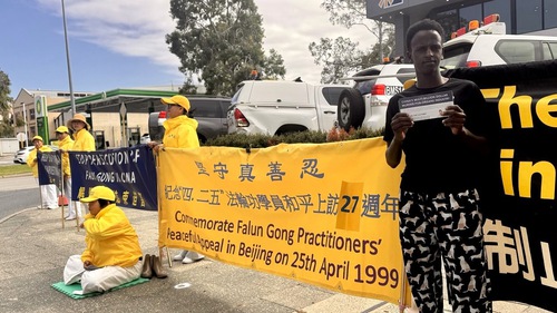 Practitioners displayed banners in front of the Chinese Consulate on April 23 and called for the Australians to help stop the Chinese Communist Party’s (CCP) persecution.