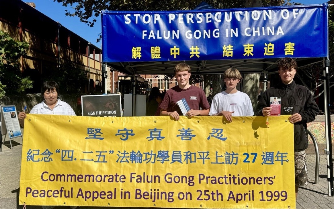 (Minghui.org) Falun Dafa practitioners held activities in front of the Chinese Consulate in Perth and in the City of Fremantle on April 23 and April 25, 2026, to commemorate the peaceful appeal in Beijing on April 25, 1999. Many people expressed their support for the Chinese people’s pursuit of freedom of belief and speech.